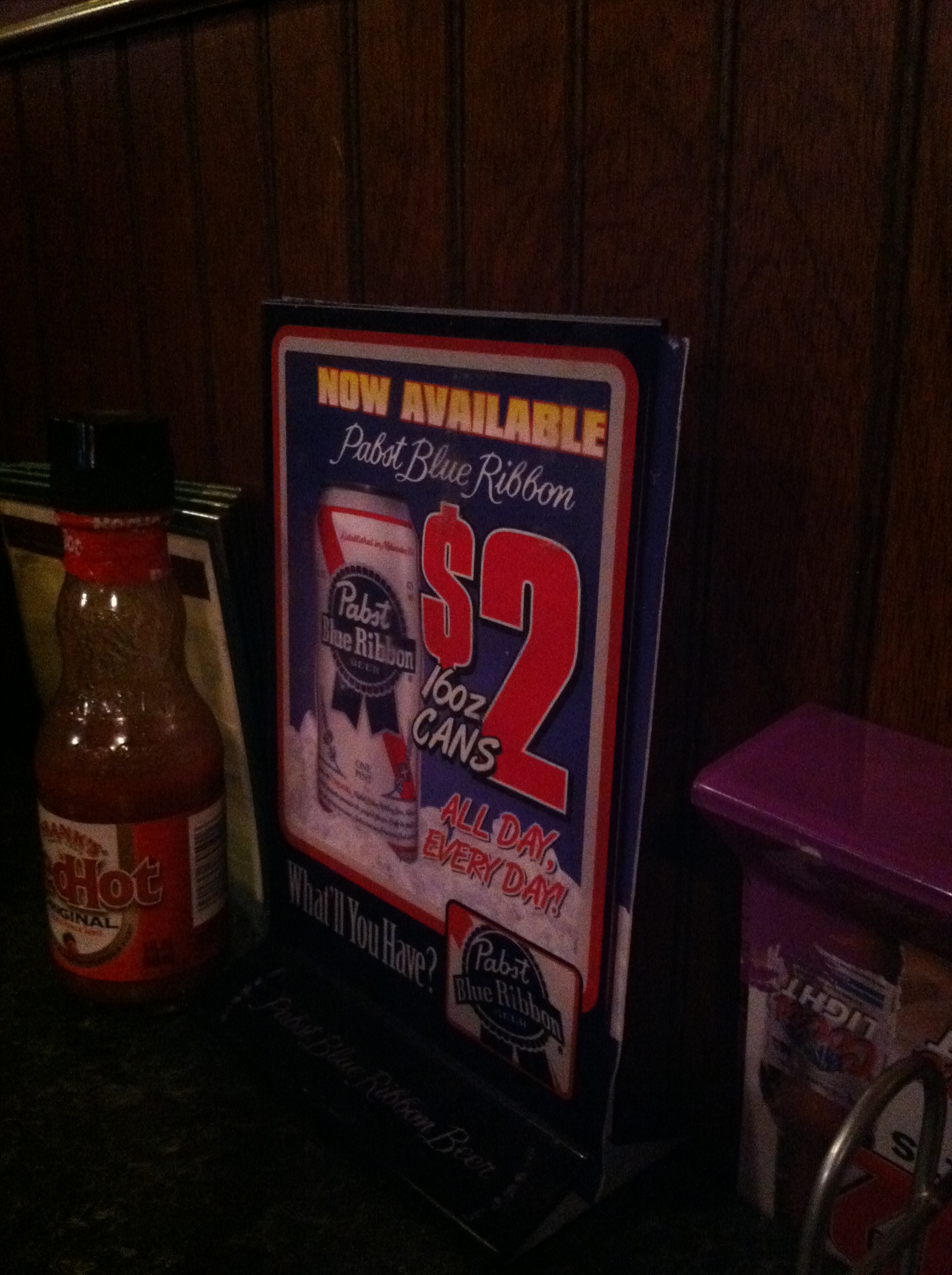 So after a couple of weeks of “classy” establishments, we decided we needed to try something that was more along the lines of a burger & beer joint. Which I guess is kind of just a nicer way to say “dive bar,” but whatever. At first glance Fisher’s Cafe and Pub seemed to fit the bill – notice Exhibit A: