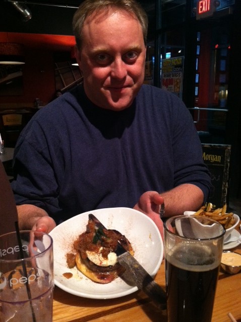 Ted ordered off the menu (always has to be different, right?) and had the Apple Pie burger. He wasn’t thrilled with it, but chalked it up to the fact that it had sounded interesting enough to catch his attention and at least he tried something new. Plus it came with a really big knife, so basically anything he said for the rest of the evening we were not going to disagree with.