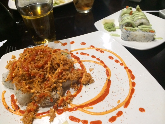 In any case, as you can probably guess by our gluttony, everything was delicious. Amanda said that the Spicy Crab rolls were some of the best she’s ever had. Shane enjoyed his “buttload” of Philly rolls enough that he didn’t want to try anything else, and ate the rest of Amanda’s rolls when she declared them dead soldiers. I liked the Tempura Asparagus better than the Volcano – which was definitely tasty, but just seemed to have a lot going on what with the pile of spicy crawfish meat on top of the actual rolls. And the wasabi aioli on the Tempura rolls actually seemed to be hotter than any of the sauces on the Volcano roll, so there’s that.