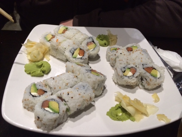 Shane: three Philadelphia rolls (which, for future reference, can also be referenced by the technical terminology of “a buttload of Philly rolls” – as the hostess called the order when she helped deliver the meals to our table. Noted.)