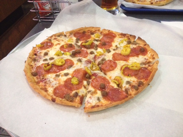 Shane ordered a NY style pizza with pepperoni, sausage and hot peppers. He was hoping to get a 16 inch, but was told that the NY style only comes in 12 inch. You could see obvious disappointment when the server informed him of this.