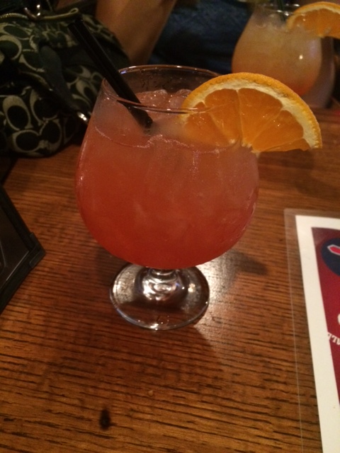 The next time we saw her was when she cruised by to deliver Ted’s beer … which he proceeded to nearly finish before our mixed drinks even made it off the bar and over to our table. OK, look, I understand only having one bartender, and that mixed drinks are harder to concoct than a draft beer … but it wasn’t busy. And we’re not talking about getting all Cocktail up in here. Honestly I think it was more the fault of our server than the bartender, since we actually watched our drinks sit at the end of the bar while our she took orders from another table (we hadn’t even put in our app order yet, BTW), then put those orders in the computer – stopping to have a conversation with some girl on who was passing her on her way to the patio – and then finally picked up our drinks to bring them over. I’m half surprised the ice in them wasn’t fully melted yet.