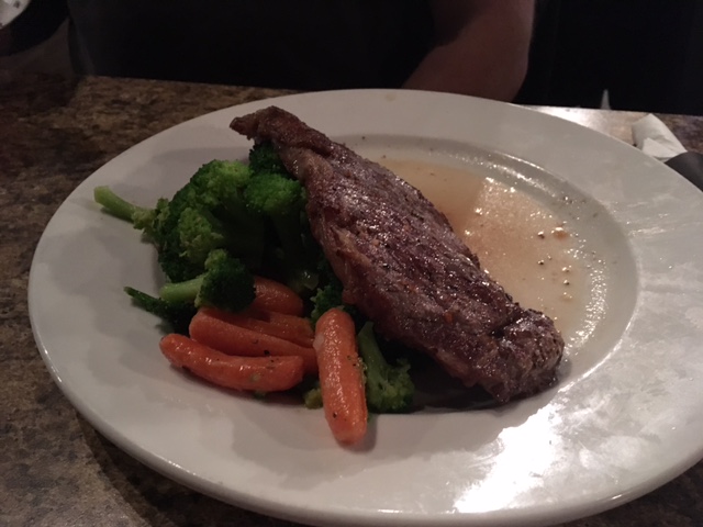Ted said the steak was good. He’s not usually a fan of pan seared, but said this one was good. He also liked the seasoning, said it was a touch salty but still good.