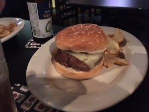 We were happy to hear that Wednesdays are still $5.95 burger nights at the Blue Willow. Although it seems to have morphed from “build your own burger night” to “just pick a burger and we’ll charge you $5.95 for it night.” Maybe we were still living 2.5 years in the past, because we thought we heard a “build your own” option in there when the server was explaining it … but the list of toppings to build from seemed to be invisible on our menus. After flipping it over about 400 times, Ted finally broke down and asked where the toppings were, and the server just kind of gave him the “well, there’s no list, just, you know, whatever you want on your burger.”