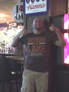 Surprisingly Shane bypassed the can of Hamm’s for $1.00 and chose the large draft of Miller Lite. But he was clearly happy to have discovered the sign.