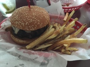I got the Favorite Burger, which was a burger covered in mushrooms, onions and Swiss cheese. It was very good, definitely hand made, although perhaps just a little overdone for my requested “medium.” I didn’t like that the bun was overly toasted, so I gave that to bottomless-pit-Shane to buzz through. But the flavor of the burger was definitely good, as long as I remember to ask for medium rare next time.