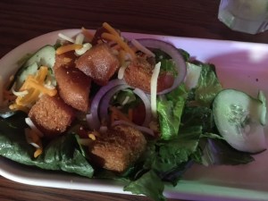 Yeah, I was right, it was a salad. But the presentation was lovey, and he did say later that it was fine, because it turned out to be delicious. It actually earned the distinction as like one of three places he would admit to being happy about ordering a salad from, since it was that good. It should be noted that the other salads that he listed in his top favorites were horribly unhealthy and included toppings like fries and fatty dressings. So score for this place that a real, bona fide, healthy salad made the list.