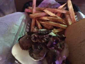 I had read that the burgers were good, so I went with the mushroom swiss. I found it odd that the menu gave a description of that particular burger, when it seems pretty obvious by the title. I mean, the saloon burger? Sure, that needs an explanation. The fiesta burger? Again, could use some help here. But the mushroom swiss burger? I think I got this one, thanks.