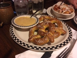 Cassi got the beer cheese and pretzels. She said it was OK. The pretzels were basically the kind you can buy in a box at the grocery store and microwave for 90 seconds after wetting them down and spreading salt on them. For a place that touts making their own pizza dough that seemed a little odd, no?