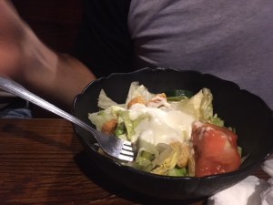 Shane got a pizza as the rest of his meal, which came with a side salad. Shane’s word for the salad was “mushy.” That’s a new one. And the worst part was that he was actually looking forward to that salad – which may be a first, especially when this wasn’t even at a time when he’s being “healthy Shane.” And then it was disappointing that it was so awful.