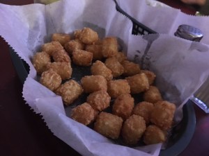 For apps it was breaded mushrooms for Ted and for Shane and me, with Cassi choosing tater tots.