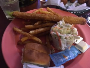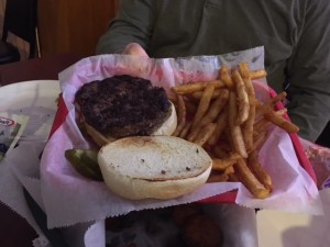 I also remembered quickly what I didn’t like about our last visit to Pat Dees … the battered French fries. Because we need to make them more unhealthy?