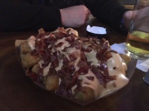 For appetizers, Cassi and Jason got the loaded tots,while Shane and I opted for the mozzarella sticks. Here’s what arrived:
