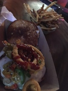 Or maybe it was the memory of the burger I ordered that somewhat prompted that response. Mine and Shane’s burger of choice was called the Ring of Fire … and let me assure you, it’s aptly named. Jalepenos + spicy ketchup = holy crap I think my tongue has shriveled up and died an angry death in my mouth because I sure as hell can’t feel it any more after eating that.