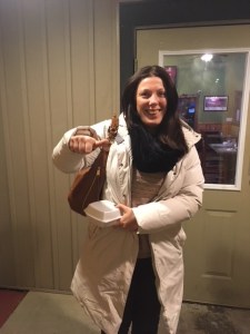 Also, we nearly forgot to do our photos before we left, so we improvised and did them in the vestibule, much to the entertainment of the folks seated just inside the window. You’re welcome.