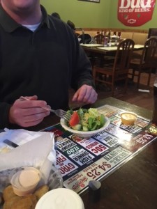 Meanwhile on the actual healthy side of the table, Cassi went with a Garden salad and six boneless wings.