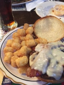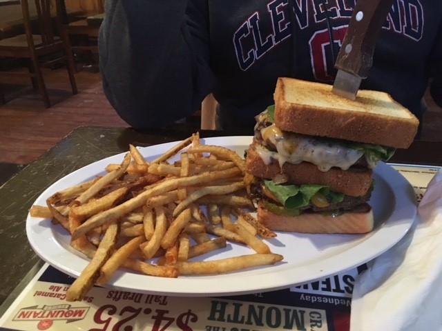 I should also mention that when his food was delivered the girl who set this monstrosity in front of Shane casually mentioned to him something called the Grilled Cheese burger – which she said was literally two grilled cheese sandwiches used as buns for a burger. Oh good Lord. Something more unhealthy than what he had sitting in front of him.
