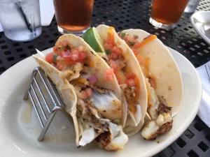 Ted was quite fond of the fish tacos that his new friend highly recommended on our last visit, so I latched onto the dual recommendation and went with those this time, as did Cassi. Cassi got hers with a side of the homemade ranch sauce because, well, to quote her “I will order that anytime I see it on a menu.”