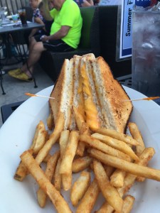 Shane got the triple stack grilled cheese and a pound of garlic Parmesan wings. I know it sounds like I’m judging his wing order sarcastically, but it literally was a pound of wings. Because some places prefer that as a measurement to just counting them out. I can’t for the life of me figure out which is actually better on the eating side of things.