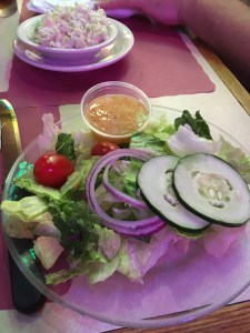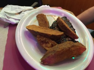 Ted got the strip steak special with jojo potatoes – and also the cole slaw, which the server recommended as “really good.” Upon eating it, Ted rephrased that to “adequate.” Not exactly high praise, but I guess it’s better than “effing disgusting,” so there’s that. Maybe if he’d eaten the jojos first, since they were apparently hot enough to remove layers of skin/taste buds and he may not have been able to taste the cole slaw by that point?