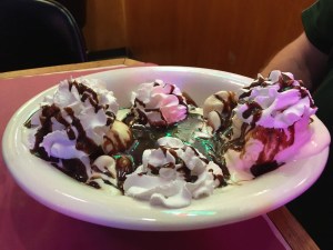 Cassi and Jason opted for the chocolate bundt cake, Ted got the brownie with ice cream, and Shane and I shared the caramel apple pie and ice cream. I have to believe that was literally one of everything on the dessert menu.