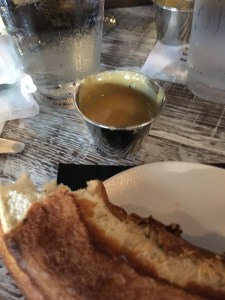 Cassi ordered the hush puppies. And then sat and watched us start to eat our food, since apparently there was also a run on those early in the restaurant’s short lifespan, as she was informed as our food was being delivered that hers would take a bit longer due to just having been started.