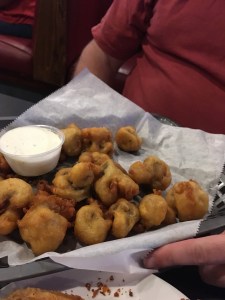 Ted ordered breaded mushrooms. And Cajun wings. AND the lake perch dinner. To which the server couldn’t contain her amazement at the sheer volume of food. Or maybe she was trying to gently suggest that Ted’s imaginary friend couldn’t possibly be hungry enough to help him finish all that. In any case, we all reassured her that this is really nothing unusual. I mean, come on. We’ve seen worse. Need I bring up the the giant sheet pizza incident?