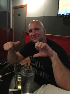 Jason. And no, his thumb isn’t broken, he just believes that this was the best way to say “I liked the pizza, but everything else was no good”