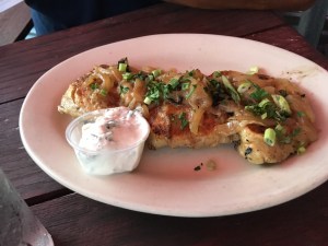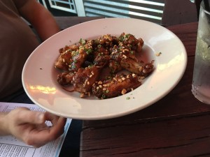 Meanwhile Cassi and Jason ordered the pierogi stack, and Ted opted for the Korean BBQ wings.