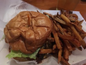 But other than not trusting us with ketchup bottles, the bartender/server was good. She checked in on us a fair amount, especially given our non-prime location and the fact that she literally had the entire place to watch at the same time. She made sure to write our names on our orders as she took them so that she could remember who got what when it arrived (although since we all got burgers, I have to ask: was it truly that difficult?). Or maybe she just wanted to be friends. I’m OK with either.