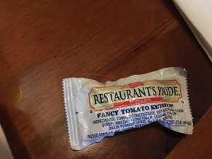 But wait! The server had an idea … instead of opening all of those packets, she should just bring us some ketchup so we won’t be so wasteful. Rejoice!