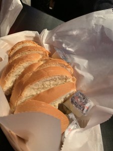 Our salads arrived first, full of cheese just like we like them, along with the basket of bread.