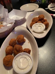 So while we were reminiscing about our last visit to Tim’s of course we had to check to see what dishes we liked the last time – other than the pizza of course – so we didn’t miss out on ordering them again. The breaded mushrooms were a big hit, so Shane and I opted for those again. Shane asked the server how many you get in the order and she said it was done by weight, not count.