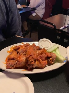 Next came Ted’s wings. Which totally negated the garlic bread smell by just smelling, well, hot.