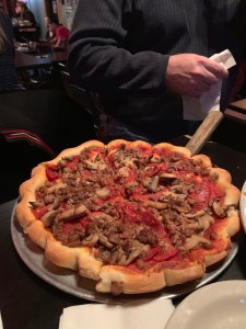 Shockingly, all of us needed to-go boxes. I know, this is new – but also keep in mind we had a lot of carbs on our table – plus the beer and other drinks – and despite our weekly training our stomachs can only take so much. And I think we made a good effort. Ted ate his entire pizza and took the wings home. Shane had a few pizza slices he couldn’t manage, and I had about half my rigatoni.