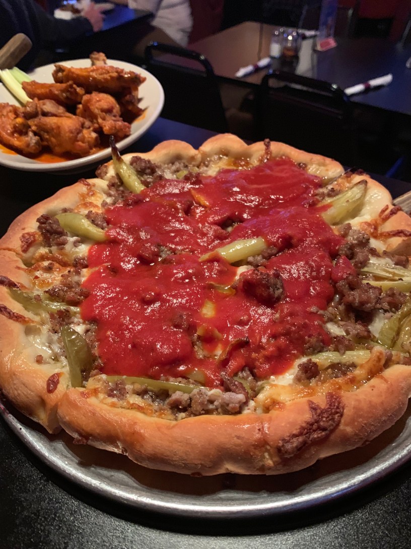 Shane barely had to look at the menu to decide that he was getting the same stuffed banana pepper pizza that he ordered the first time we came. It had gotten rave reviews online prior to our last visit, and he definitely added his to the long list.