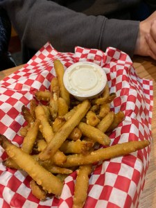Thumbs way up on the fries, though. I got the steak fries (compared to the rest of the table’s fresh cut) and was not disappointed there.