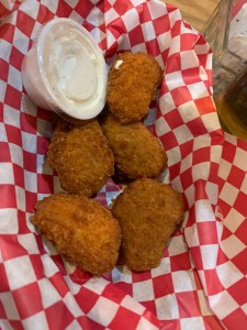 Mine and Shane’s bill was $35, which got us two appetizers, two Bud lights for Shane, one Christmas ale for me (which was the Beer of the Month, so cheaper than usual), and two full meals – of which I ended up taking half of my sandwich home, probably thanks to the two apps worth of fried stuff we started out the meal enjoying. Not too shabby at all.