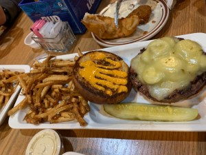 But then she mentioned that the place is known for its burgers – which, come on, you’re not really going out on a limb with that one considering it’s in. the. name. of. the. establishment. – and also the gourmet grilled cheeses. OK, now we’re getting somewhere.