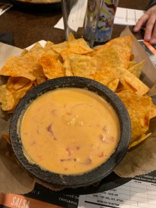 Shane and I got the queso dip with jalepenos. Or Rotel. Or something that gave it some chunkiness without a lot of spice. Which I realize sounds disgusting but trust me it was tasty.