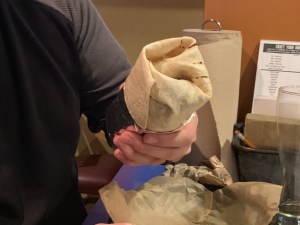 This was something Shane probably would’ve preferred to know before he placed his order – which was not only a create-your-own flank steak burrito, but also one of the fried chicken tacos.