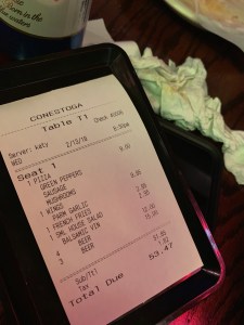 So remember that whole “this is kind of a dive bar” and “awesome, they serve Hamm’s in cans” feel from the start of the evening. Yeah, not to much after the bill arrived. I’m not sure in what world the 12oz cans of Hamms should be $3 each, because that seems a little pricey. And $5 for a White Claw? Someone please visit the local supermarket and let them know the case of six cans is – well, let’s just say no one would be paying $30 for that.
