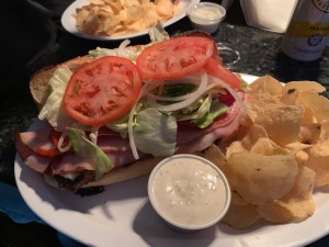I got the Rhinoburger sub, which everyone said sounded delicious (from the description, of course, not the actual name. I’m sensing a theme with this place). It’s kind of like a Mr. Hero Romanburger – a burger, plus lunch meats like ham, salami and pepperoni, plus lettuce and tomato, on a sub bun.