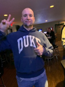 So that’s $55, for an app platter, two sandwiches, an order of wings, and three rounds of drinks each. I consider that a win.