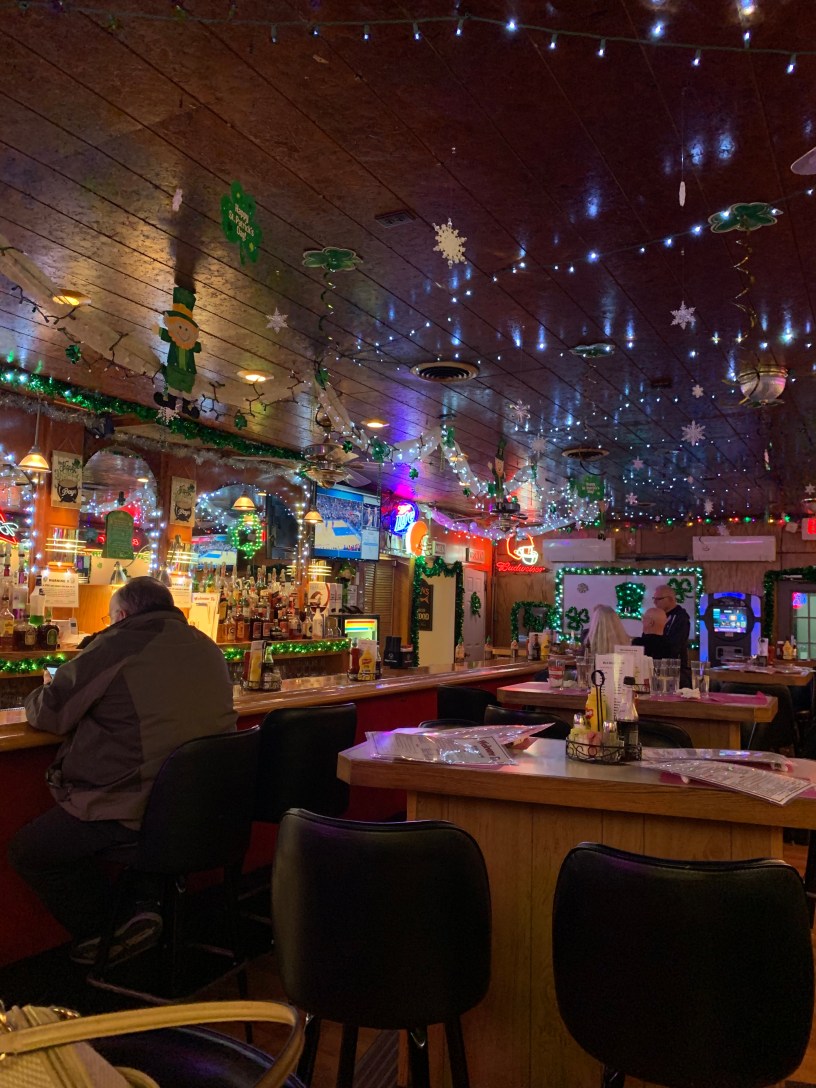 Lots and lots of St Patrick’s Day flair going on up in this place. We remembered that last time the ceiling and walls were decked out in July 4th decor, so I guess just arrived prepared with the knowledge that it’s going to look like the party store section of whatever holiday is closest just threw up in there.