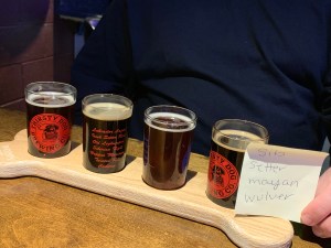 That was all me, Shane and Ted. On the other side of the table, Cassi stuck with the raspberry ale, while Jason tried a couple of different full sized glasses.