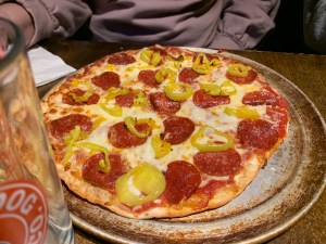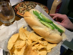 We also found ourselves in another “you ordered last so you get to watch everyone else eat” situation. When she brought Shane’s and Jason’s sandwiches she warned us it would still be a full five minutes on the last pizza. Oh, cool. That might’ve been better information to have when I ordered, but thanks.