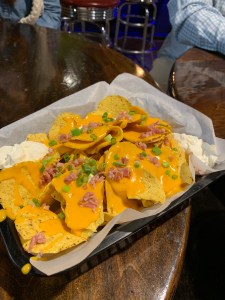 Less decisively, Shane and I got nachos, while Cassi and Jason got loaded fries. They also followed Ted’s lead on the mini corn dogs. I mean, he was quickly sold so that must mean something, right?