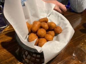It took Ted about 3.7 seconds to glance at the menu and announce that he’s getting the mini corn dogs. OK then.