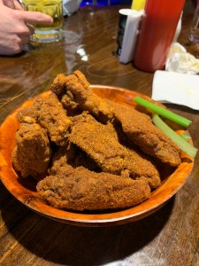Shane got 12 of the “dry rub” which, when asked, was explained that it’s kind of a spicy Cajun. Which begs the question, why not just put that on the menu then?